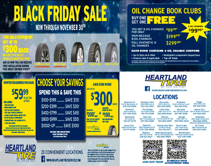 Heartland Tire, with stores throughout Minnesota and Iowa, has become a trusted name in tires, auto repairs, and commercial services. We've built a reputation as the go-to service provider to help meet all of your automotive needs. Whether it's passenger vehicles, commercial fleets, or even agricultural equipment, we've got you covered!